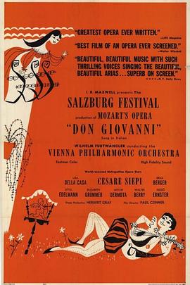 1954年指挥大师富特文格勒在萨尔茨堡音乐节上,指挥维也纳爱乐乐团,上演莫扎特的经典歌剧《唐•乔万尼》,这个珍贵的录像堪称富特文格勒留存至今最完美的影像资料,来自当年奥地利导演保罗•齐纳尔的努力,不计工本,用彩色电影胶片拍摄整个歌剧的演出,由著名的意大利男低音西耶皮演唱剧名主角,瑞士女高音德拉.卡萨演唱艾尔薇拉,堪称一时之选。卡司如下: